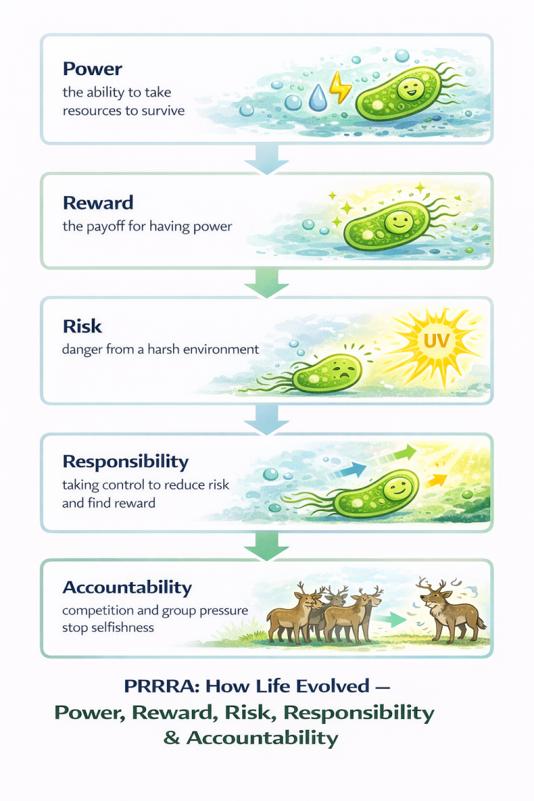 Life itself evolved through a natural balance of Power, Reward, Risk, Responsibility and Accountability (PRRRA). Humans have warped that balance in politics. The Process Party wants to realign it so that power is no longer something politicians chase for its own sake – it becomes the tool that serves you and your family instead.